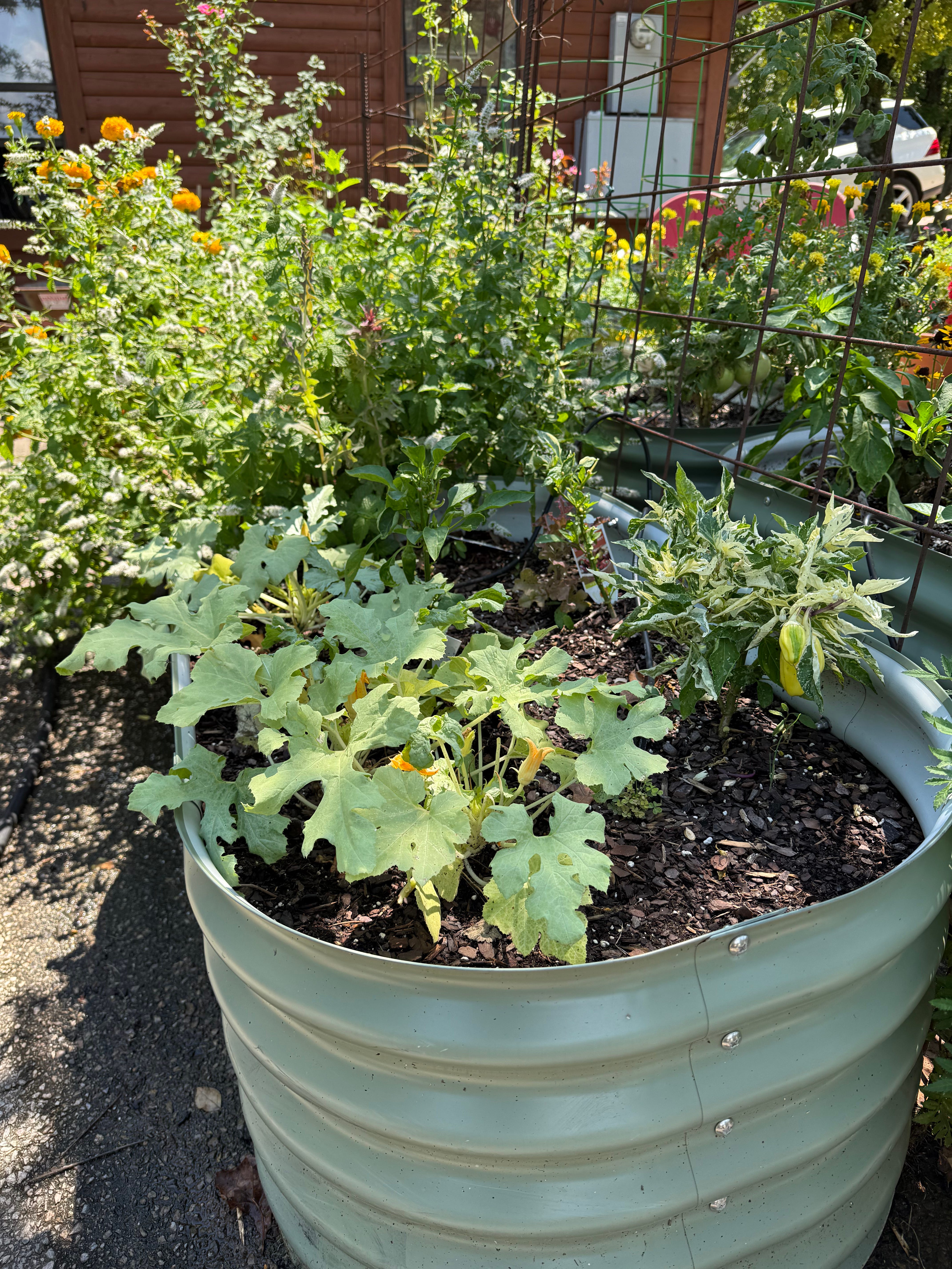 The tomatoes and peppers I started from seed struggled with the cold and damp conditions and didn’t thrive, so I pulled them up. In late June, I restarted with store-bought pepper and tomato plants. I finally sowed my okra and zucchini seeds after waiting for the soil to warm up.